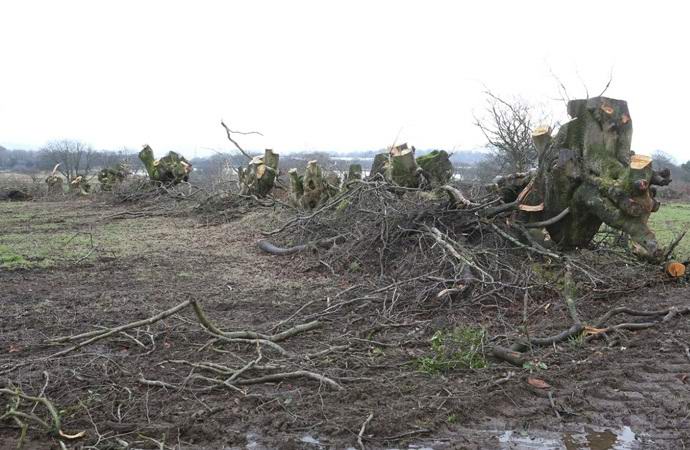 A múlt héten nyomozást indítottak a kormánytisztviselők megbotlott egy bűncselekmény helyén. Ahol a liget állt harminc méteres fák közül csak a kender maradt fenn szétszórt felső ágak – a bükk fatörzseket elvitték valahova.