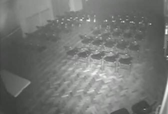 A megfigyelő kamerák titokzatos felvétele közzétett rendező Színház Essex brit megyében. Rajta látható ok nélkül bútorok mozognak a teremben, és világító golyók repülnek.