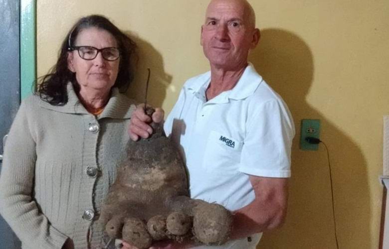 Ennek ellenére valójában csak a titokzatos lelet volt csak egy hatalmas burgonya, amely ilyen furcsa formát kapott. A „láb” még vékony, hajszerű gyökerekkel van borítva. tovább A pár szerint több mint hat éve nő otthonának közelében. burgonya, azonban Kikuinely soha nem találkozott még soha mint ez. A házastársak szerint sajnálják csodálatos gumó ételhez, ezért úgy döntöttek, hogy átadják Burgonya Múzeum Florianopolisban.