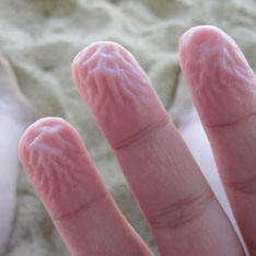 A vízben tartózkodó ember ráncos ujjai – az evolúció eredménye