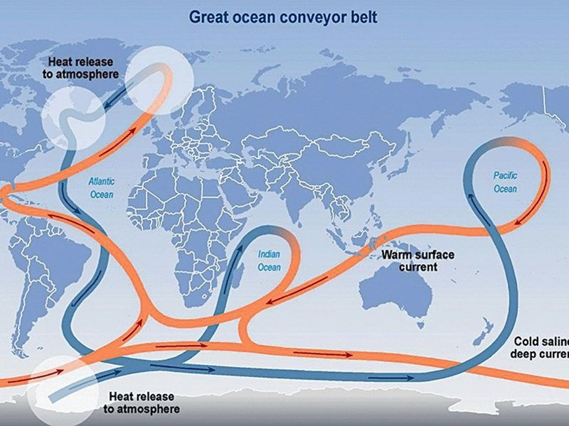A tudósok kifejtik, hogy az úgynevezett AMOC (Atlanti meridiációs billenőkeringés) gyakorlatilag egy szivattyú Grönlandtól nyugatra, ahol hidegebb és sós víz halmozódik fel, melynek köszönhetően a nagy sűrűségű víz az óceán fenekére süllyed, gyakorlatilag szívva meleg vizek az Egyenlítőtől. De … a felmelegedés miatt és hatalmas olvadva Grönland gleccsereit, a víz ezen a helyen mindegyikré válik egy évvel kevesebb sós és hideg, ezért kevesebb sűrű, vagyis a szivattyú gyengül, a meleg folyam meleg áramlik szintén nem érkezik Európába és Amerikába egyenlítői hő, mint néhány évtizeddel ezelőtt.
