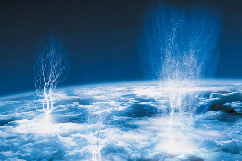 1989-ben spriteket fedeztek fel – szinte ugyanazok a villámcsavarok, csak a föld felszíne felett 70-80 kilométer tengerszint feletti magasságban. Az óriás fúvókák (egyfajta sprite) teljes egészében elérik a magasságot 90 kilométerre. Sőt, ezek a kozmikus villámok (“villámok fordítva “, az űrbe verték) mennydörgéses zavarokhoz kapcsolódik. De hogyan?