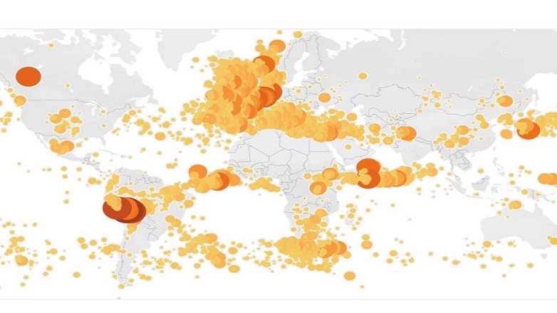 A szupercsavarokat rögzítettük az északi és a keleti részek felett Az Atlanti-óceán, az Andok és a Földközi-tenger, Japánban és azok mentén Egyenlítő az indiai és az atlanti óceánokban. Korábban azt hitték ezek a nehéz villámcsapások olyan helyeken fordulnak elő, ahol magas konvektív instabilitás – szubtrópusi és trópusi Afrikában és Amerika, valamint Délkelet-Ázsia.