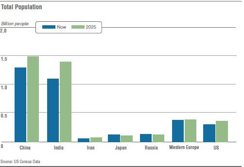 Fotó nyílt forráskódú, az Egyesült Államok Nemzeti Hírszerző Tanácsa által előrejelzést készített, amelyben meghatározta a fő tényezőket és a kulcsot folyamatok, amelyek meghatározhatják a jövőbeli eseményeket. a Az előrejelzés elkészítése során a Tanács segítséget nyújtott kutatóközpontok, tanácsadó cégek, tudományos intézményekkel. Szakértők százai dolgoznak és nem dolgoznak a kormány mind az USA-ban, mind az országon kívül elfogadta részvétel az előrejelzés kidolgozásában. Az előrejelzés szerint 2025-re nem egyetlen “nemzetközi közösség” marad, amely a következőkből áll: nemzetállamok. Az energia szétszórtan van a saját szabályok szerint játszó új játékosok között növekszik annak a veszélye, hogy a hagyományos nyugati szövetségek gyengülnek. Sok országot valószínűleg vonzza a kínai fejlesztési modell, mint a politikai és gazdasági fejlődés nyugati modelljei. egy ilyen átmenet erősítené az olyan államokat, mint Oroszország, amely ki akarják vonni a nyugati rendet. Az USA továbbra is az egyetlen egy ország, amely erősebb, mint mások, de erőfölényük gyengülni fog. A csökkenő gazdasági és katonai lehetőségek előfordulhatnak arra kényszeríti az Egyesült Államokat, hogy számos komplex kompromisszumot hozzon a prioritások között bel- és külpolitika. A szükségesség Az Egyesült Államok regionális stabilizátorként működött a középső térségben Kelet, bár más külső erők – Oroszország, Kína és India – lesznek nagyobb szerepet játszanak, mint még ma is. A terrorizmus valószínűleg nem csökken 2025-ig, de vonzereje csökkenthető, ha a Közel-Keleten folytatódott a gazdasági növekedés és a munkanélküliség a fiatalok körében csökkent. A közös technológiák bele fognak tartozni kezet az aktív terroristáknak. Ha az árak vannak az olaj és a gáz továbbra is magas lesz, a fõ állam hatalma Az olyan exportőrök, mint Oroszország és Irán, gyorsan növekedni fog, a GDP Ugyanakkor Oroszország megegyezik Nagy-Britannia és Franciaország GDP-jével. -ban Oroszországnak 2025-ben lehetősége nyílik gazdagabbá, erősebbé és erősebbé válni magabiztos, ha emberi erőforrásokba fektet be, kibővíti és diverzifikálja gazdaságát, és beilleszkedik a világba a piac. Nem várható, hogy más államok emelkedjenek Kína, India és Oroszország szintjén, és valószínűleg nem fogja megismételni ezen országok ugrásait. Más országok a gazdasági szférában még elmaradnak. szomszédság A Szaharától délre eső Afrika továbbra is a legsebezhetőbb a gazdasági helyzetben összeomlások, társadalmi feszültségek, polgári konfliktusok és politikai instabilitás. 2025-re számos ország jövedelme lesz Latin-Amerika átlagszintre emelkedik, más államok, különösen a Venezuela és Bolívia esetében a vizsgált időszakban, elmaradnak, és egyesek, például Haiti, még szegényebbek lesznek még kevésbé lesz érzékeny. Összességében latin Amerika le fog maradni Ázsia és más gyorsan növekvő országok mellett régiók a gazdasági versenyképesség szempontjából. az a következő húsz évben Ázsiában, Afrikában és Latin-Amerikában lehet számíthat az egész népesség növekedésére; Nyugaton a növekedés 10% lesz kevesebb, mint három százalék. Az USA kivétel a régióban az elöregedő népesség a fejlett országokban a fennmaradásuk során növekvő születési arány és a bevándorlás. Valószínűleg növekszik a működési zavarból a viszonylag kedvező országok. Kína, India, Irán, Japán, Oroszország, Nyugat-Európa és az Egyesült Államok az ütemterv szerint lesz így néz ki: