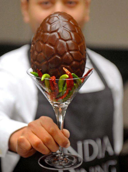 Ez a húsvéti tojás olyan éles, hogy a látogatók étkezés előtt írj alá egy papírt, amely megerősíti, hogy jelentést tesznek cselekedeteik. Ezt a tojást speciális védőkészülékben is főtték kesztyűt. A forró paprika ebben a tojásban 300 palack Tabasco szósz, amely Scoville-skálán 1 millió. Hihetetlen, hogy a tojás nem a fűszeres étel a világon. 55 éves Ian Rothwell az év elején volt az első, aki bejelentkezett teljesen legyőzte a világ legélesebb curry-jét, az volt készült 30 Naga Infinity chili paprikából. Curry melyik “Widower” -nek nevezték el egy brit étteremben, amelynek hat besorolása volt millió pont a Scoville-skálán – ez több, mint gázfogyasztás doboz bors.