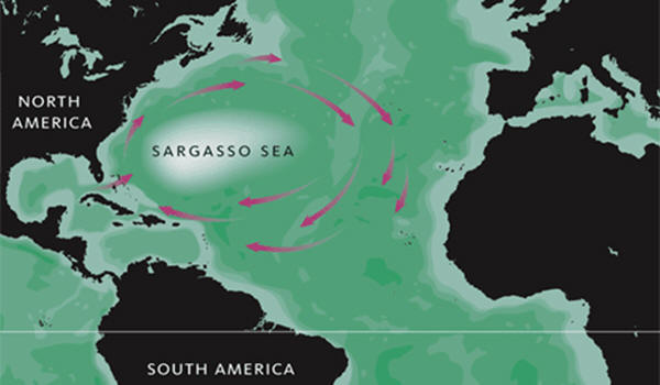 Mivel ez a tenger az északi rész közepén található Atlanti-óceán, ez az egyetlen tenger, amely nem saját partjai vannak. Az óceánáramok körülvéve, Sargassovo a tenger szemetet vonz, és algákkal tágul fel. Mert algák, hulladékgyűjtések és áramok által létrehozott elszigetelés, a tengerben a víz nagyon meleg és nyugodt, annak ellenére, hogy a tenger körül az óceán változó és hideg vizein.