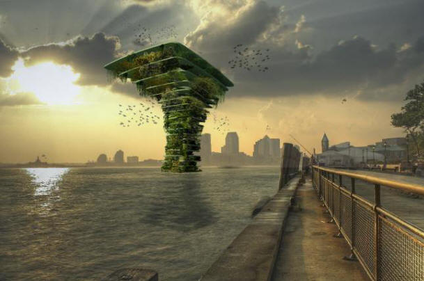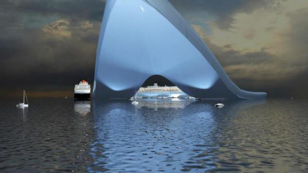 Az építész azt javasolja, hogy építsenek Olaszország partjainál A Neptun 60 torony, amely a tengerfenékből növekszik, támaszkodik tengerparti sziklák és rohanjon fel 20 magasságra m.