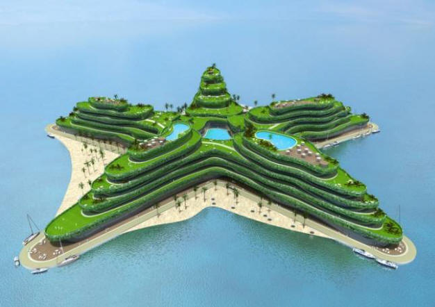 Félig merített négyszintű úszó ház terve 20 m hosszú, hat ember számára tervezték. ház napenergiával és hidrogén üzemanyaggal működik. Van a szigettelepen több ház kombinációjának lehetősége.