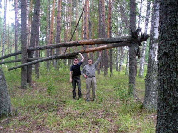 – Sok struktúrát hoznak létre fákból és ágakból. Tettek kunyhók, hajlítsa meg és csavarja el az ágakat, illessze a pólusokat a földbe mint egy stockade. Ugyanebben a Vyatka-erdőben csodálatosak szerkezetek: hatalmas, 200 kg súlyú csomagtartók, egymáshoz szorítva két másik csomagtartó. A saját kezű ember ezt nem építheti fel állapot, és ezekben az erdei dzsungelben a felszerelés nem fog működni.