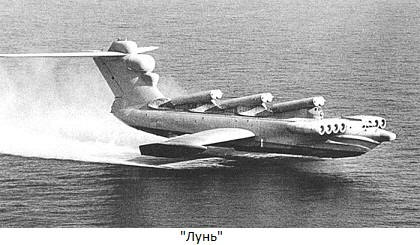 A katonaság természetesen érdeklődött az ötlet iránt. Megfigyelték a profikat megmenekült a polgári szakértőktől. Repül alacsony magasságban az ekranoplán nem látható a radarok számára, miközben egyáltalán nem fél hajók elleni aknák. 1966 júniusában indították az elsőt kísérleti ekranoplan. Az AN-225 1988-as megjelenéséig volt a világ legnehezebb repülőgépe. KB-dokumentumokban Az ekranoplan mint “KM” (álhajó), az amerikaiak a rövidítést a saját módján megfejtette: “Kaszpi szörnyeteg”. “Lun” és az “Eaglet” 1983 – ban a “KM” alapján megkezdte az építkezést (és 2006 – ban) 1986 vége) a szovjet Lun rakétavető A repülőgépek szállítóinak megsemmisítésére szolgál. Repül a legtöbb vízzel (4–14 méter) láthatatlan volt a radarok számára és fel tudott jönni rakétaindító távolság (fegyverzet – szuperszonikus szárnyas “szúnyog” rakéták, 6 db). A nagy sebesség (500 km / h-ig) tette sebezhetetlen az őrhajók katonai rakétáihoz, a Lun könnyedén elment az üldöztetéstől, lehetetlen volt őt elhagyni (sebesség Amerikai nukleáris hordozó – 70 km / h.) Harci teher – 140 tonna, körút – 2.000 km. Az amerikaiak “gyilkosnak” hívták repülőgép-hordozók “.