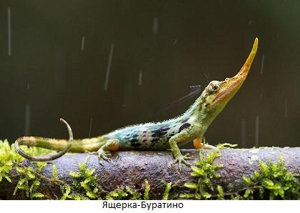 A Pinocchio gyíkot 1953-ban fedezték fel Ecuador dzsungelében. Utána, bármennyire is kerestek, nem találták meg. Hatalmas sajnálatos módon az állatorvosok felvették az örökre eltűnt listájára. 2013-ban abban az évben, Alejandro Artega csoport élve és jól találta őt. a a tanulmány kimutatta, hogy csak a férfiaknak hosszú orra van, és ez nem egy tövis, ahogy azt feltételezték, puha és a gyík be tudja mozgatni különböző oldalak, bár nincsenek benne izmok. Állatorvosok számára ki kell derítenie, miért van rá szükség?
