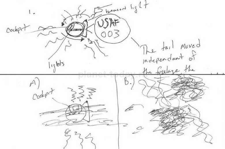 És amikor egy ilyen “repülő csészealjon” egy amerikai város lakója van A Moonparkban (Kaliforniában) egyértelmű jel látható fehér, fekete felett (vagy inkább ezüst) “USAF 003”, akkor természetesen meglepte a lélek mélységeiből, és annyira, hogy elfelejtettem még kivenni a telefont és legalább készítsen egy képet egy furcsa tárgyról, amit mondott Ez volt: