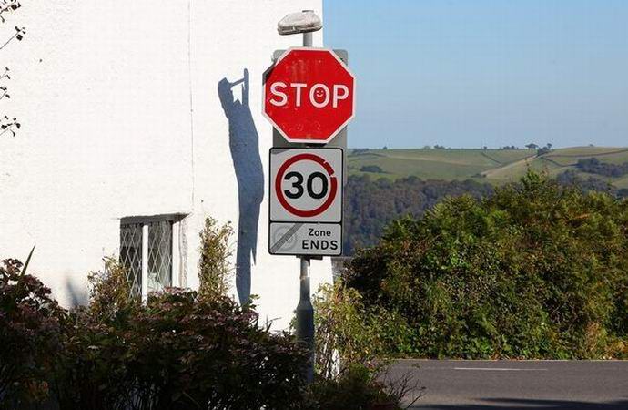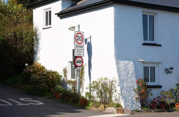 Hívásra érkezett a rendőrség nevetett megközelítve az épületet és látva ezt a félelmetes árnyékot, valóban egy kötélen felfüggesztett emberre hasonlított, esett a falon egy lámpaoszlopból, mellette állva közlekedési táblákkal házban. Eddig a rendészeti tisztviselők a helyszínen jegyzőkönyvet készítettek és képeket készített (valószínűleg egy kísérteties árnyék megmutatására másoknak – legalább sikerült megismerkednie az interneten), akasztófalakkal és a a nyoma hideg – a nap kissé megváltoztatta a helyzetét és az árnyékot elvesztette korábbi formáját.