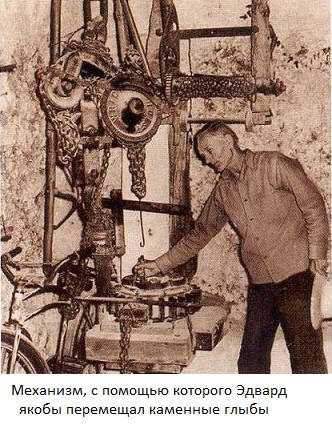 Még mindig rejtély marad, hogy Edward hogyan viselkedett blokkolja a kitermelés helyét a tengerparton az Ön webhelyére, és elhelyezi őket ott, miközben öt tonnás szobrokat emelt 10 méter magasra, soha nem tette Nem béreltem fel ehhez berendezést, és soha nem béreltem fel az embereket, hogy segítsenek. A vékony, gyenge Edward, akinek a súlya alig haladta meg a 47 kg-ot, mindig egyedül megbirkózni.