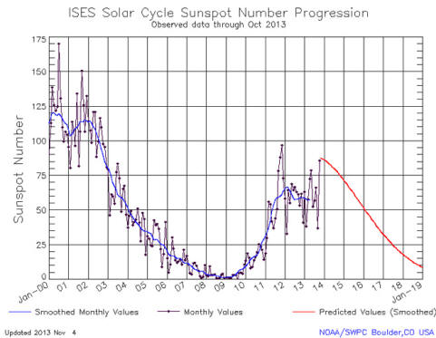 A jelenlegi és előrejelző napenergia-ütemterv. © NOAA A Nap röntgen sugárzása 2013. november 6-tól november 7-ig 2013 года по данным спутника GOES-15