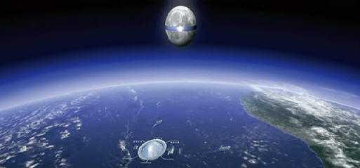 A holdból küldött sugarak a következő állomáson kerülnek továbbításra: Föld (a Shimizu Corp. illusztrálja). A társaság képviselői egy sajtóközleményben állítják, hogy ily módon akár 13 is lehet ezer terawatt energia. A “holdgyűrű” felépítése 2035-re tervezik. Az egyetlen akadály ennek az ötletnek a megvalósítása teljes precedensek hiánya. Még senki sem próbálta megtervezni ilyen hatalmas mintát egy másik égi test. A küldetés költségei természetesen nagyon költségesek lesznek magas azonban, hogy az ötlet megtérül, senkinek sem volt kételkedik.