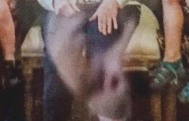 Ha a nagymamara néz a kép közepén, láthatja furcsa folt a lába helyén. Hősünk gondosan körülnézett egy ilyen „hibára”, és hirtelen egy tiszta töredéket látott rajta férfi arc. Figyelemre méltó még az is, hogy egy könny elkukkant az arcán személy.