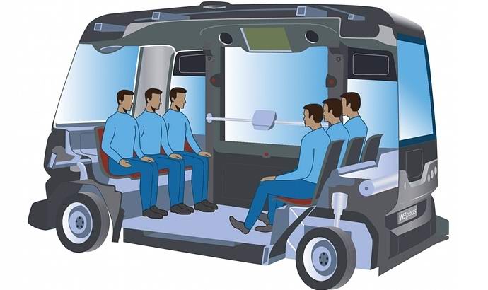 A “WePod” lelassul a program által beállított megállók közelében és megnyílik az ajtód. A busz hat állampolgárt mehet be, akik fizetnek vezetjen hitelkártyákkal, és üljön egymással szemben. gép ellenőrzi, hogy mindenki a helyén ül-e, a kabinban nyulak és álló utasok voltak, amelyek után az ajtó bezáródik, és a busz továbbmegy, a többi úthasználó között manőverezve mozgás.