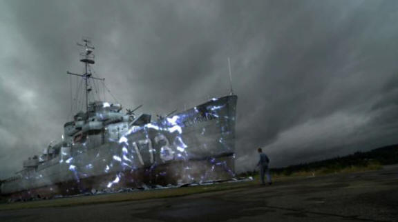 “Bármi legyen is a Philadelphia-kísérlet eredménye, ő valóban a valós életben zajlott, és elvégezték Az amerikai haditengerészet 1943-ban. Erre használtam hadihajó USS Eldridge. A tudósok el akarják készíteni ezt a hajót láthatatlan a radar számára, és nem teljesen láthatatlan. alatt a kísérlet színei vörösről narancssárga, sárga és zöld (emlékezzen a kísérlet tanúi által megfigyelt tulajdonságra) “zöld köd” – jegyzet. auth.).