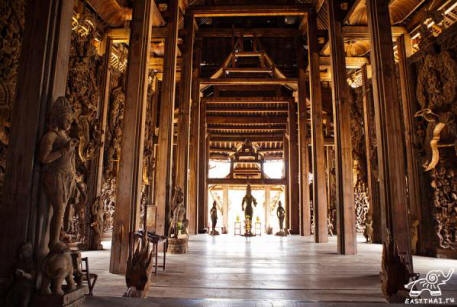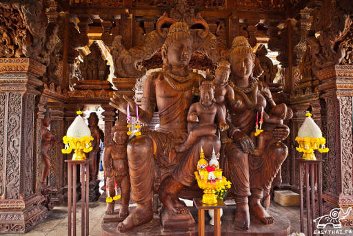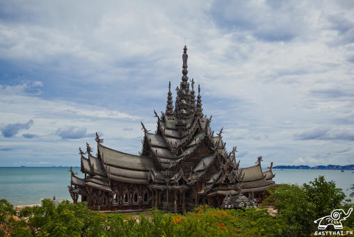 Az Igazság temploma lenyűgöző fa szerkezetű tengerpart az ősi thaiföldi építészet stílusában, tele vallási és filozófiai jelentése. A templom magassága körülbelül 105 méter Az internetes források szerint – ez a legtöbb A legmagasabb fa szerkezet a világon. A tengerparton jött létre, mind a négy szél fújt, és messziről tűnik valami mesés és szokatlan.