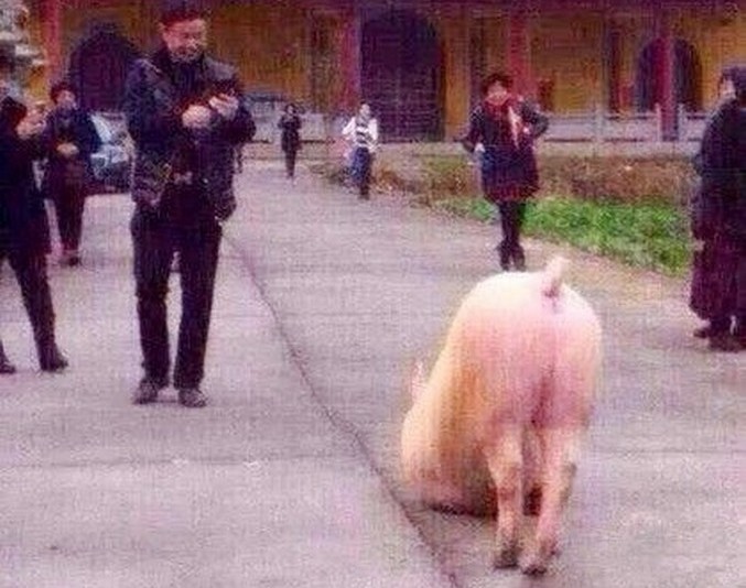 A Wenzhou Dushibao kínai kiadása szerint, február 22 (az újév negyedik napja Kínában) egy buddhista templomhoz a faluban Tantou (Zhejiang tartomány) egy disznó jött, és az első lábait meghajlítva hosszú ideig térdelve állt. Az állat nem kiabál az emberekre válaszolt.