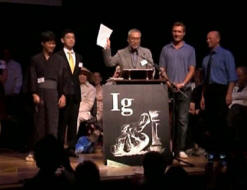Fotó nyílt forrásból © Fotó: Hivatalos honlap Shnobel-díj Shnobel-díj (Ignobel-díj, Nobel-ellenes díj) – az egyik leghíresebb nemzetközi antipremy, a rangos világ tudományos díj paródiája – Nobel-díj A díj neve egy büntetés: angolul úgy hangzik, mint az Ig Nobel – díj (az angol nyelvű mássalhangzó). tudatlan – “szégyenteljes”) és az angol hang paródiája A Nobel-díj neve Nobel-díj. Az egyik változat szerint a név tartalmaz egy utalást az Ig Nobel névre is, a szódapop feltalálója viseli. Adaptált formában fordítva oroszul, a név úgy hangzik, mint a „Shnobel-díj”, azonban az Ignobel-díj lehetőségei is érvényesek. “A Nobel-díj” és az “Anti-Nobel-díj”. Ig A díjat 1991-ben az Annals amerikai magazin alapította hihetetlen kutatás “(Annals of Improbable Research, AIR) itt: a Mark Abrahams magazin társalapítójának és szerkesztőjének (Marc Abrahams). 1999 óta évente tíz Shnobelevskyt ítélnek oda díjak (az 1991–1998 közötti időszakban számuk 4 és 11 között változott): klasszikus “Nobel” jelölések (fizika, kémia, orvostudomány / fiziológia, irodalom, közgazdaságtan és a békeharc) Kategóriákkal egészül ki, amelyek tantárgyait minden évben jóváhagyják Shnobelevsky Bizottság külön-külön. Különböző években A “szivárványos” jelölések tartalmazzák: diétás, régészet, biológia, kognitív tudomány, nyelvészet, ornitológia, akusztika, táplálkozás, gáz és gázdinamika, mezőgazdaság, egészségügy, pszichológia, mérnöki, technológiai, higiéniai, asztrofizikai, információs technológia, környezetvédelem, szociológia, oktatás, entomológia, meteorológia, művészet, fogyasztási cikkek, valamint alkalmazott tudományok). A zsűri a Tanács Menedzser, amely magában foglalja az Annals of Improbable szerkesztőit Kutatás, hivatásos tudósok (ideértve a Nobel nyertesek), a különféle országok újságírói. A zsűri soha nem fog teljes erővel, a kommunikáció e-mailben zajlik. hogy kevesebb, a végső döntéseket a tagok élő szavazással hozzák meg zsűri, amelyre az Annals of Improbable szerkesztőiben kerül sor Research. A tárgyilagosság érdekében az utcán közvetlenül meghívják őket további választottbíró teljes szavazattal. Jelöltek bárki jelölhet díjat, megengedett és self-jelölést. A hivatalos megfogalmazás szerint a Shnobel-díj odaítélték “az eredményekért, amelyek először nevetést okoznak, majd – meditáció “(1991 eredeti szövege a következő:” for olyan eredmények, amelyeket nem lehet megismételni, vagy nincs értelme csináld “). Az első évben odaítélt három díj kivételével szertartások, az összes díj tudományos díjazottak jelenlétét vonja maga után munkák és publikációk egy bejelentett témában. Díj szponzorok a Harvard Computer Society, a Tudományos Egyesület támogatója Harvard Radcliffe Tudományos Fikció és Fizika Hallgatói Társaság Harvard Radcliffe. A bemutatóra a kézbesítés előestéjén kerül sor Nobel-díj. Az ünnepséget eredetileg Massachusettsben tartották. Technológiai Intézet. Most a Shnobel-díjat ítélik oda A Harvard Egyetem Sanders Színháza, amely adta a világnak a legtöbb Nobel-díjas. A nyertesek díjat kapnak valódi Nobel-díjasok kezéből, akik ilyen alkalomra készültek fel nevetséges jelmezekben, hamis szemüveggel és hamis szemüveggel felszerelve orrukat. Van egy hagyomány, amely szerint a nézők a díjazza a papírrepülőgépeket a színpadra, amelyek után Harvard professzor elsöprő diploma Roy Glauber (a fizika Nobel-díjas 2005-ben), a Shnobel Bizottság hivatalos “seprűtartója” kinevezi. A Shnobel-díjasok válaszbeszédének nem szabad tartania több mint 60 másodperc. Miss Sweet megállítja azokat, akik túllépik ezt a korlátot Pu “(Miss Sweetie Poo) – egy kislány, aki a színpadra megy, és felkiáltóan szeszélyes: “Kérem, hagyja abba, unatkozom!” alak A Shnobel-díjak eltérőek: formában is elkészíthetők fólia vagy rögzítő állkapocs érmek egy állványon. bizonyítvány három nyertes által aláírt nyugtát Nobel-díj. A díj bizonyos esetekben kifejezi fátyolos kritika, de a legtöbb esetben Shnobelevsky A bizottság felhívja a figyelmet a kutatási dokumentumokra, címre vagy témára amely vicces vagy vicces elemeket tartalmaz. Például tanulmány az indiai teljes felületének kiszámítására elefántok; arra a következtetésre jutottunk, hogy a fekete lyukak paramétereikben megfelelőek a pokol helyére; annak vizsgálata, hogy fertőzött-e étel, amely a földre esik, és kevesebb, mint öt másodpercig ott fekszik. Az ünnepségen a Shnobel-díj átadása hagyományosan a szavakkal fejeződik be host: “Ha nem nyerte meg ezt a díjat – és különösen akkor, ha nyert – sok szerencsét jövőre! “. Néhány nap múlva az ünnepség után a Massachusetts Institute of Technology-ban tartják nem hivatalos Shnobel előadások, amelyeken a díjazottak részesülnek lehetőséget a kutatásuk lényegének és jelentőségének magyarázatára. Az orosz tudósok kétszer kapják meg a Shnobel-díjat. 1992-ben az irodalom területén kitüntetett orosz vegyész volt és kristályos grafikus, az Orosz Tudományos Akadémia megfelelő tagja, Jurij Struchkov. munkavállaló A moszkvai Szerves Vegyületek Intézete nem volt kapcsolatban a irodalom, de hihetetlenül gyümölcsöző volt. 1981 és 1990 között volt 948 tudományos publikáció jelent meg. Átlagosan, ahogy az alapítók számították Ignobel, – egy munka 3,9 naponként. 2002 – ben a Díj A gazdaság egyes területei menedzserek, vezetők és auditorok felé fordultak A Gazprom a képzelet matematikai fogalmának használatáért számok az üzleti világban. 2000-ben a Shnobel-díj, valamint a Andrew Michael Berry a Bristoli Egyetemen fogadta Andrew-t Játék (a Szovjetunió