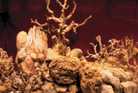 Krétakori tengerfenék üres előtt millió évvel ezelőtt. Bal oldalon a molluskovrudisták héjai, “A tengerek dinoszauruszai”, így nagy méretük és egyidejű kihalás. A diorama valódi paleontológiai tárgyak, szerzője Santiago Lafarga. Tekintse: ANDREI ZHURAVLEV