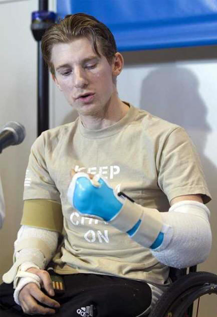 A sebészek fényképeket tett közzé egy hihetetlen műveletről amelynek eredményeként az iraki háború veteránja elvesztette mind a négyet A végtagok egy bomba robbanása után mindkét kezét átültették. Marokkó Brendan, aki majdnem egy robbanás során megsérült négy évvel ezelőtt azt mondja, hogy várakozással tekint újra képes lesz autóval vezetni és úszni szenvedés után műveleteket. A 26 éves New Yorker sajtótájékoztatón beszélt a john hopkins kórházban, ahol olyan sebészekhez csatlakozott, akik bonyolult 13 órás műtét volt.