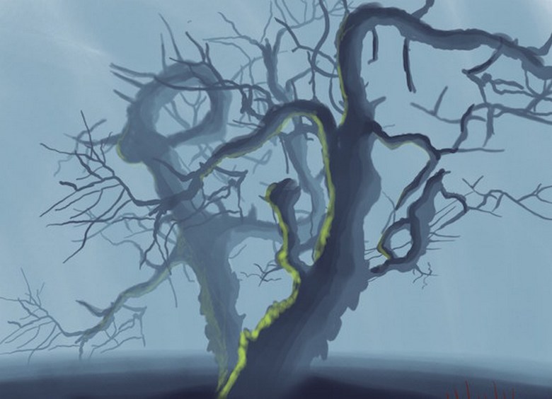 … ma csak azt tudjuk kitalálni, mi volt az ragacsos anyag. Talán volt egyfajta szimbiózis a fa között és biolumineszcens organizmus? Nehéz megmondani most nincsenek fák, vagy jól “rejtőznek” egy személytől …