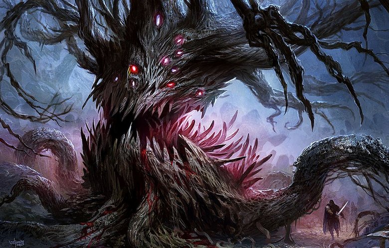 A vámpírfát vastag ügyetlen törzs és sok más különböztette meg szerpentin csúszós ágak, amelyek nem tartalmaztak lombozatot és állandóan különböző irányokba húzva és húzva. Ezek kitartóak A “végtagokat” teljesen lefedték kis tapadókorongokkal, például tapadókorongokkal polip. Amint az állat vagy a madár megérintette az olyan ágot, mint a az áldozatot sok erős csáp vett körül, addig tartva, amíg az összes vér el nem szívódik