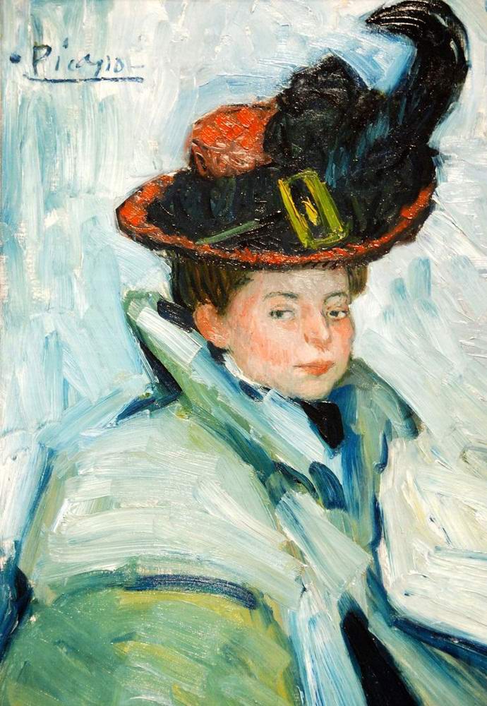 De ez nem egy közönséges kép, hanem a legendás kéz vászonja Spanyol művész, Pablo Picasso. Pontosabban: beszélünk az 1901-es “Woman in the Cape” remekmű egy példányáról, újra létrehozva festő évtizedekkel az eredeti létrehozása után.