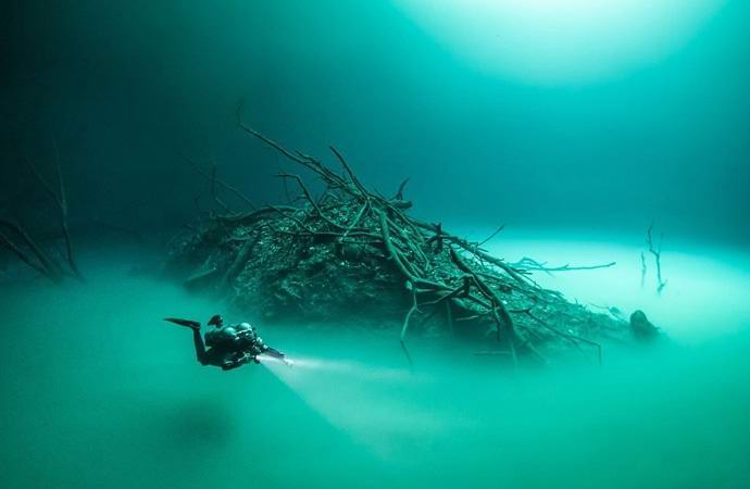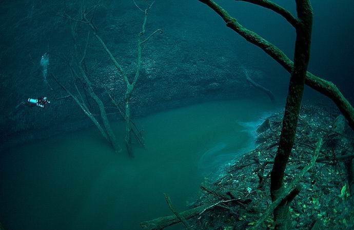 Két tíz kilométerre a mexikói Tulum városától a Yucatan-félszigeten egyedülálló hely található kultusz tapasztalt búvárok számára. Azt gondolhatja, hogy itt a miszticizmus halojával körülvett víz alatti tájat vették fel valaki megdöbbentő álma, vagy akár egy másik bolygóról. tovább több méter mélyen egy fényes folyó folyik, amelynek oldalain mintha valódi fák nőnének.