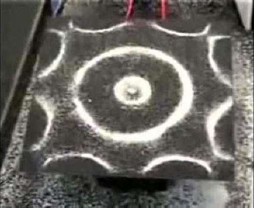 “Tegyük fel, hogy van egy lemez bármilyen anyagból amelybe homokot öntünk, majd csatlakoztassuk ezt a rendszert oszcillációs generátor, például egy kilohertz. Mi fog történni ez a lemez? A lemez rezonátor lesz, és sorok, amelyek megfelelnek a maximális vagy minimális pontoknak mutasd meg ezt a képet. Ennek megfelelően, ha ingadozások vannak nem egy hullámhossz, hanem több hullámhossz, akkor lesznek ilyen csúcsok valamilyen összeg. Ráadásul arányosak lesznek ezekkel a hosszúságokkal hullámok, amelyekkel mindannyian hangot adunk neki. Nos, a kimenet van ilyen képek. ”