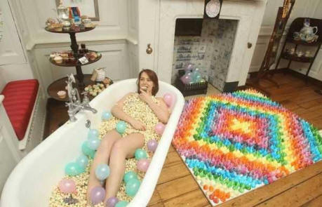 Az édes étterem vendégeit felkérjük, hogy maguknak “megegyenek” – az ablakon és a falakon keresztül, macaroons díszítve, és – ünnepe habcsók szőnyegek és cukorka ablakpárkányon. első a világon egy teljes egészében süteményből készült “szálloda” képes lesz rá csak egy éjszakára fogadja vendégeit. A vendégeknek vanília szivacsból készült párnát és szőnyeget kínálnak kézzel készített, aprólékosan kidolgozott habcsókból. intézmény a Soho-ban, London központjában található, és ennek eredménye 14 művész munkája, akik több mint 2000 órát sütöttek és 900 óra a szálloda dekorálására, több mint 600 felhasználásával kilogramm cukor.