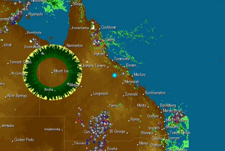 Queensland ausztráliai lakos, becenévvel az interneten 1A angrylightbulb viszont felhívta a figyelmet a torlódásokra furcsa felhők január 14-én az Isa hegy közelében. És hirtelen megállapította, hogy az időjárási radar mutat valamit ezen a helyen furcsa – 700 kilométer átmérőjű tárgy. nehéz azt sugallják, hogy egy ilyen hatalmas idegen hajó közeledett a föld felszínére, de talán ez csak egy erőtér készülék, sokkal kisebb. És ennek megerősítésére ebben titokzatos villámok kezdtek hámozni ott.