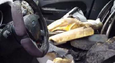 Mi volt a meglepetés a szerencsétlen vadász számára, amikor visszatért autója – a fekete Focus egyszerűen nem volt felismerhető! Nyomán könnyen meg lehet érteni, ki felelős a pogromért. Az egész a gép valószínűsége, hogy ugyanaz a lövés “működött” egy medve, mert vércseppek találtak a helyszínen.