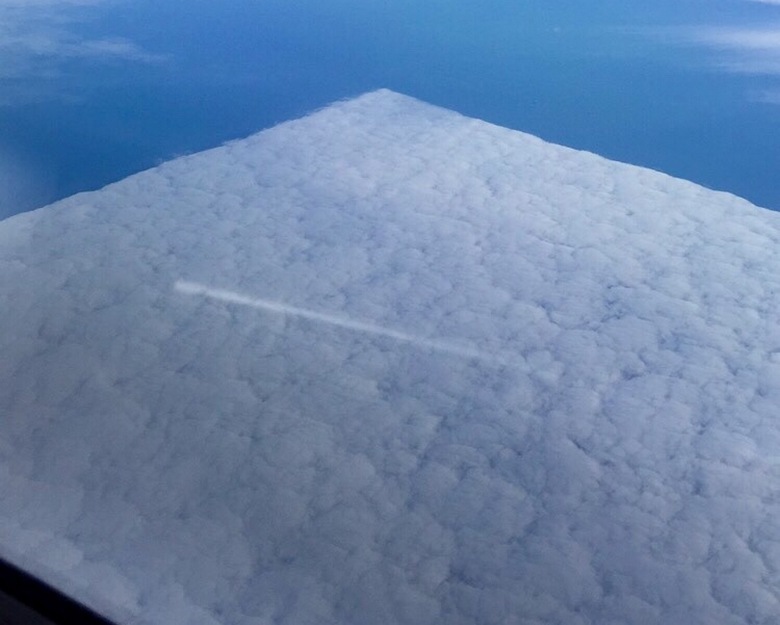 A magyarázat logikusan helyes, bár az egyszerű megértés érdekében elég összetett és ködös. Van benne bizonyos ellentmondások. fizikai törvények. A tény az, hogy a hullámfront, amelyről a dolgok azt mondják, hogy nem lehet négyzet alakú, vagyis felhők tisztán elméletileg (a fizikai törvények szerint) nincsenek téglalap alakú. Az emberek azonban megfigyelik ilyen tökéleteset négyszögletes (téglalap alakú) kísérteties figurák az égen (lásd a fotót) fent és videó alább).