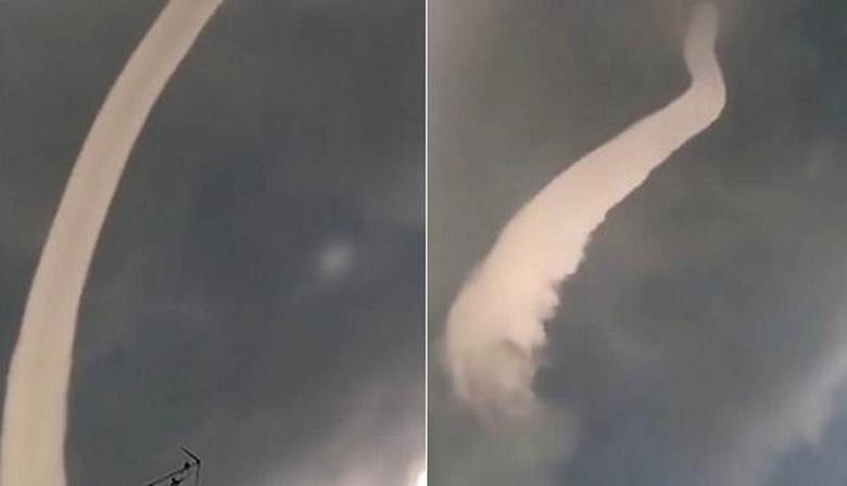 Tehát másnap Japánban újabb felhő jelenséget filmeztek – hatalmas tölcsér formájában, amelyet ebben az esetben egy ív hajlított meg, összecsukott, majd egyszerűen „elrejtett” egy fekete felhőbe. Ugyanakkor a tölcsérfelhő megpróbálta meglepni a közönséget: nem az csak eltűnt egy felhőben, és szó szerint levette a talajt, megpördült oszlop és majdnem “beugrott” a felhőbe.