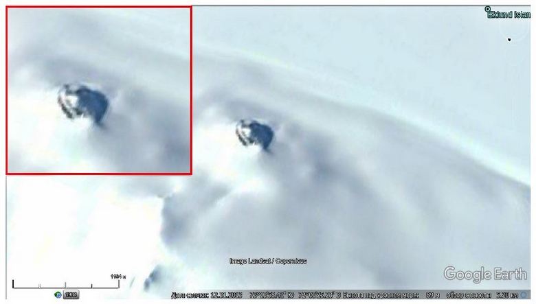 Másnap Valentin Degterev örült előfizetőinek videocsatorna új felfedezés: a Google Earth képeken találta meg titokzatos tárgy, nagyon emlékeztet egy “repülő csészealjra” idegenek. A kutató szerint észrevette ezt a szokatlant szerkezete még az 1997-es fényképeken volt, de akkor volt teljesen érthetetlen, hogy ez tárgy vagy egy kissé kiolvadt szikla. most Ha azonban a jég még tovább süllyedt le, akkor teljesen meg tudja határozni mi az?