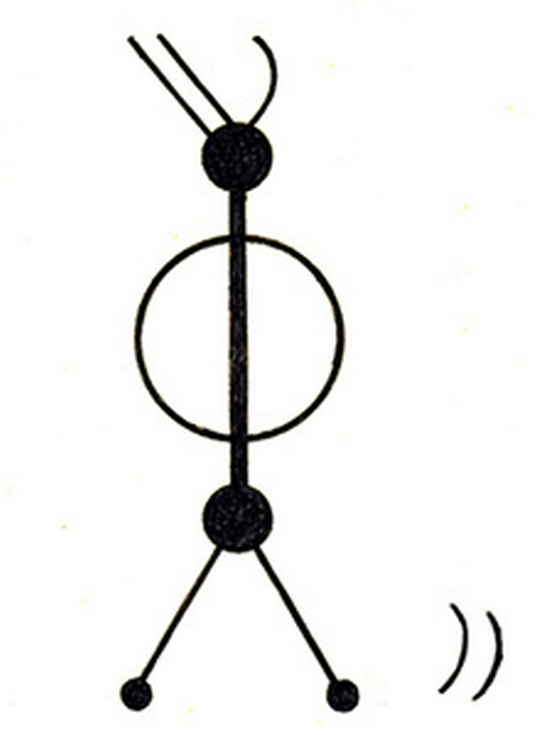 A második rajz, amely ugyanabban az 1991 – ben jelent meg Anglia ugyanazon a területén egy arrogáns pózban demonstrál humanoidot – ezt csak egy ember – magyarázza Pavel Khailov. 3 jönnek ki a fejéből gerenda. Az egyik ívelt, kettő lábában fekszik. Az azt jelenti, hogy az emberi bioenergia nagy része zavart, ezért földi lelkek. Mindazonáltal 2 közvetlen sugarat jön ki ki a humanoid fejéből, reményt hagyva, hogy minden még mindig lehetséges az emberiség pusztulásának megszüntetése és leállítása …