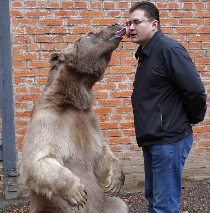 Fogságban a barna medvék általában másfél évszázadig élnek, egyébként és még sok más, tehát Stepa, ábrázolva, egész életének előtt áll. A két méteres medve nagyon játékos és szórakoztató. Tud elkapni a labdát, szereti viccelni Jurival, mint vicc, és szereti, ha fésülje ki. Inkább egy kisgyermeket szokott megbántani hátulról asztal a mestereikkel. Szerencsére nincsenek gyerekek a házban.