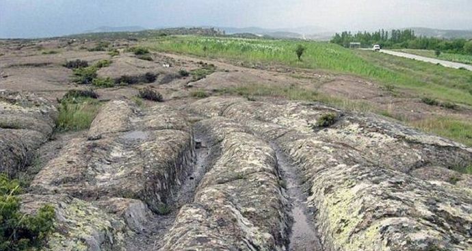 Fotó a nyílt forráskódú Alexander Koltypin orosz régész, meggyőződve: a török frygian-völgyben lévő fosszilis rozsda a következőről maradt: nehéz járművek, esetleg terepjárók tíz-tizenöt millió évvel ezelőtt.