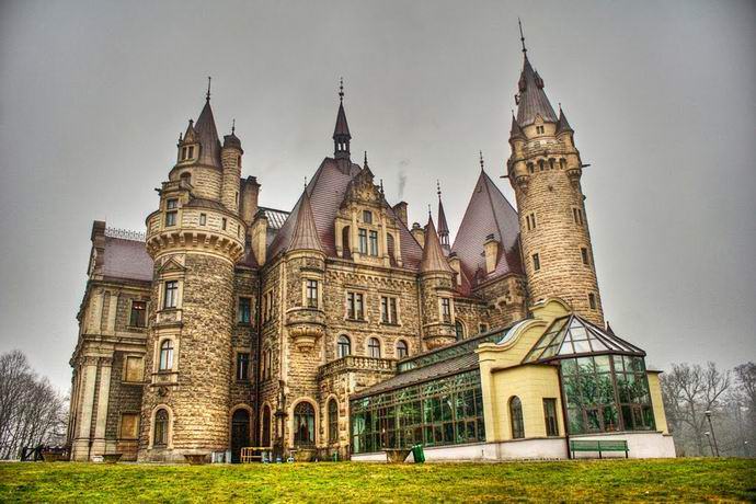 A Moshnensky kastély a korszak épületeinek komplexuma építészeti eklektika, a lengyel Mosna falu közelében található. A palota és park együttes területe több mint hét ezer négyzetméter. A palotát kilencvenkilenc torony díszíti különféle méretekben. Úgy néz ki, mint egy királyi palota néhány Walt Disney rajzfilm. A közönséges emberekben és így elnevezés: “lengyel Disneyland”.