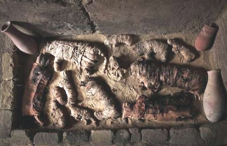 A régészek felfedezték ezt a sziklába faragott egyedülálló síremléket messze nem véletlen, de ők még nem is számítottak ilyen szerencsére. az Ez a titokzatos kripta több tucat múmiát tartalmazott, és sokan csak a kőpadlón feküdtek. Annak ellenére, hogy a tudósok előzetes becslése szerint legalább kettő eltemetése fél évig a maradványokat nagyon jól megőrzik.