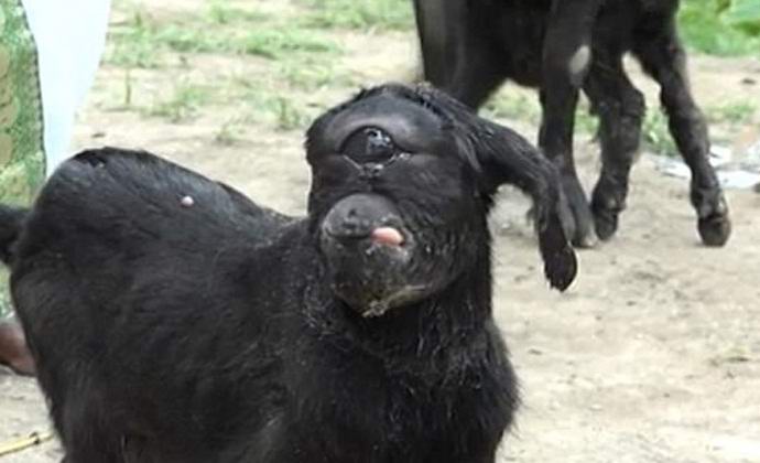 Az indiai Assam faluban szokatlan gyerek született egy szemmel. Állatorvosok szerint a kölyöknek nem kellett volna élnie és több nap, mivel hasonló fejlődési hibával rendelkező állatok szinte közvetlenül a születés után meghal. Ez azonban a ciklopus megtévesztette az orvosok összes elvárását és több mint egy hétig élte. Jelenleg amikor más állatokkal fut a farmon, és vezet az állatállományra normál.