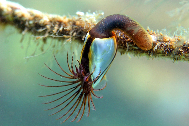 A tengeri kacsák planktonból táplálkoznak: ragasszák ki magukat a héjból az antenna mancsát, és vízzel szűrve, enni fog.