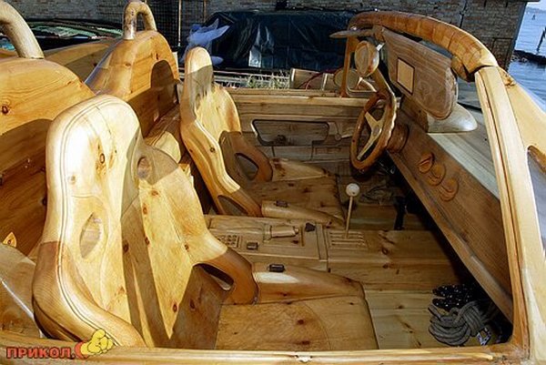 Ez nem modell, hanem egy igazi autó? Mint mondják, teljes növekedésben. Ezt az olasz Livio De Marchi készítette, ezt teljesen kivágta gyönyörű autó fából.