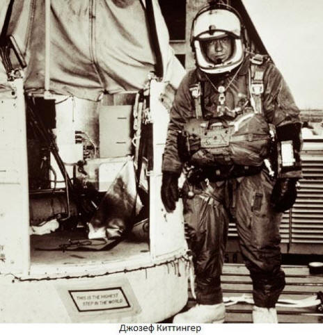 Egyebek mellett a szovjet kozmonautika alapítója azt is foglalkoztatta, hogy az űrhajós visszatér a Földre tudományos program végrehajtása. Nem elég egy embert küldeni helyet, vissza kell adnia! Az első űrhajósok visszatértek csökkentett kapszula. És ha a baleset? Akkor mi lesz? Valóban ebben? eset, hogy kiszálljon a készülékből és ejtőernyővel szálljon le a Földre? Kérdések 4000 m feletti magasságban jelentősen leesik a légkörben lévő oxigén százalékos aránya. Az oxigén miatt 30 -60 másodpercnyi éhezést követően az “aktív tudat” kikapcsol és bekapcsol hogy megoldja a legegyszerűbb puzzle-t (például: „vegye el évét születése 20 “) hihetetlen mentális erőfeszítéseket kell tennie. Az első néhány percben az űrhajós elképzelhetetlennel esik le sebesség. Hogyan viselkedik ebben az esetben a teste? önként a leeső test melegszik magas hőmérsékletre. eldobott a manökeneket elszenesedett végtagokkal, orr és fül nélkül találták meg. A védőöltözet állni fog? És ha az űrhajós esik dugóhúzó? Ha 140 fordulat / perc sebességgel forog, az agy elválasztódik gerincvelő, és belemerül a koponya felső részébe. Nyisd ki a szemem Meg kellett nyitnom a szemhéjakat az ujjaimmal. Centrifugában tesztelve néhány pilóta ilyen mennyiségű vért rohant a fejére az erek felrobbantak. Ezt a „vörös fátylat” ennek a feltételnek hívták. A személy elviszi a közelgő túlterheléseket? Csak egy módon lehetett válaszoljon ezekre a kérdésekre – ellenőrizze a gyakorlatban. Joseph Kittinger ugrása Az 50-es évek végén az Egyesült Államok elindult Excelsior projekt egy biztonságos ejtőernyős rendszer létrehozására magas tengerszint feletti repülők számára.