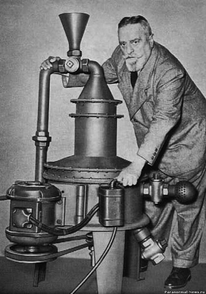 fénykép nyílt forrásból Victor Schauberger – ötletes öntanuló tudós – egész életében megpróbálta feltárni a természet titkait. Ő az tudta, hogyan lehet a vizet természetes módon tisztítani és felhasználni hatalom az ember javára – ahogy az ősek is tették. És ennek alapján az örvénymotort először építették … repültek egy tányér.