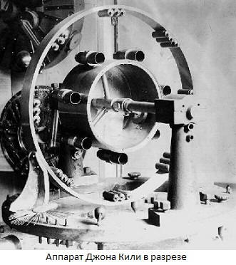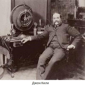 Keely, gyakorlóként valóban zavart volt a tudományos életben szempontjából, de épített egy működőképes gépet és bemutatta a nyilvánosság előtt. Bármely külső energiaforrás nélkül forogtak hatalmas kerekek, kábelek letéptek, acélrudak meghajlottak. A „Keeley gép” által kidobott fémgömb ütött egy csomót vastag tölgy deszka. Nagy kereskedők New Yorkban és Philadelphiában, Lenyűgözve, amit láttak, úgy döntöttek, hogy pénzt fektetnek a feltalálóba és szervezte a “Kili Engines” részvénytársaságot telepítéssel 100 000 dolláros tőkével. A semmiből származó energia áttörést ígért a fejlődésben technikusok és bolondok érkeztek. Az áttörésre azonban nem került sor az idő telt el, de osztalék nem volt. Időszakosan megjelent arról számol be, hogy a bátor motor hamarosan belép a piacra, majd a társaság részvényei 200 vagy annál több pontot emelkedtek (egyszer is) 1000!), Majd szintén zuhant. 1888-ban a társaság csődbe ment; Keelyt pert indították. A tárgyaláson a feltaláló megtagadta a gépének működési elvének nyilvánosságra hozatalát, amelyre és kapott határidőt.